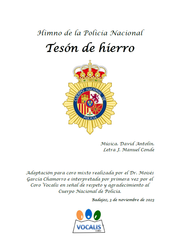 El Coro Vocalis demostró su virtuosismo desde el principio, entonando piezas clásicas con una destreza y pasión inigualables. Sin embargo, el punto culminante de la mañana fue el estreno de un nuevo arreglo para coro del Himno de la Policía «Tesón de Hierro» realizado por el director del coro Moisés G. Chamorro y que resonó con fuerza y orgullo en la iglesia. El público, conmovido y emocionado, agradeció la interpretación del coro.