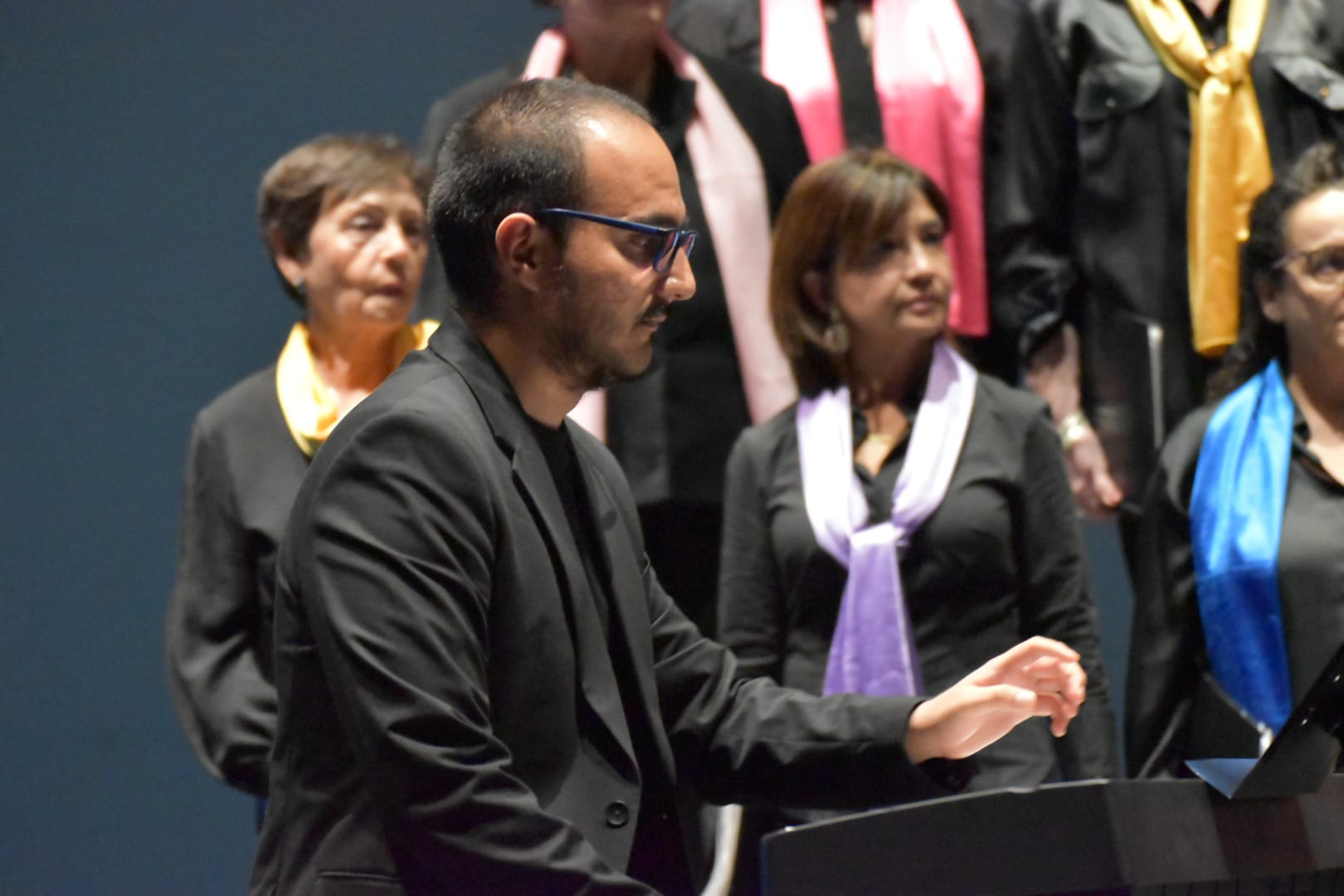 Nuestro coro ofreció un vibrante repertorio de obras hispanoamericanas, bajo la batuta del maestro José Luis Porras Barrios, quien asumió la dirección de manera excepcional debido a la indisposición de nuestro director titular. Las melodías de canciones tan celebradas como Solamente una vez, La Flor de la Canela o Alma llanera, llenas de ritmo y sentimiento, transportaron al público a paisajes sonoros lejanos, dejando huella en cada uno de los asistentes.
