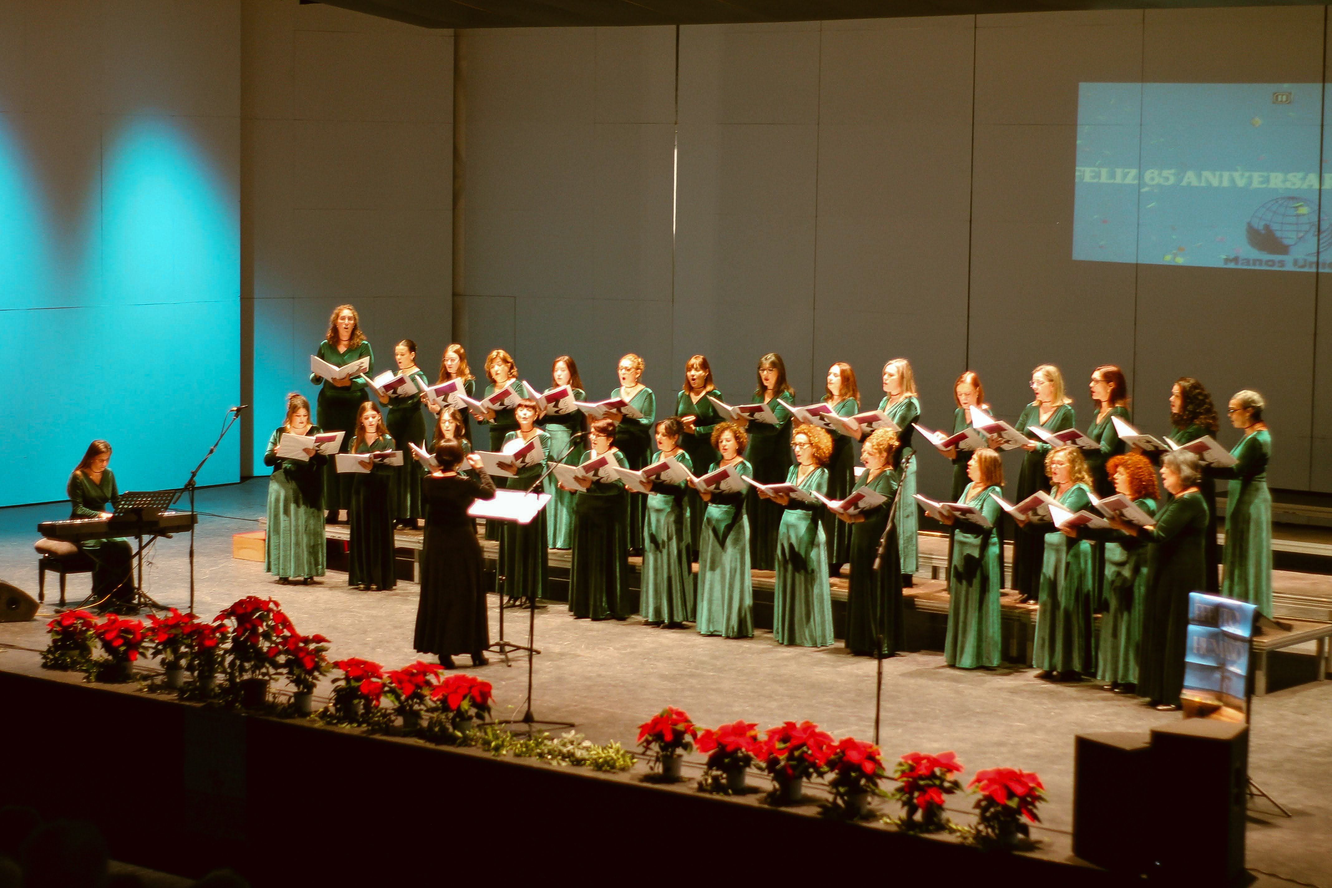 El pasado domingo 24 de noviembre de 2024, el Coro Vocalis tuvo el honor de participar en el Encuentro de Coros organizado por Manos Unidas en su 65º aniversario celebrado en el Palacio de Congresos Manuel Rojas de Badajoz. Este evento solidario, destinado a recaudar fondos para campañas benéficas, fue una noche llena de música, emoción y generosidad.